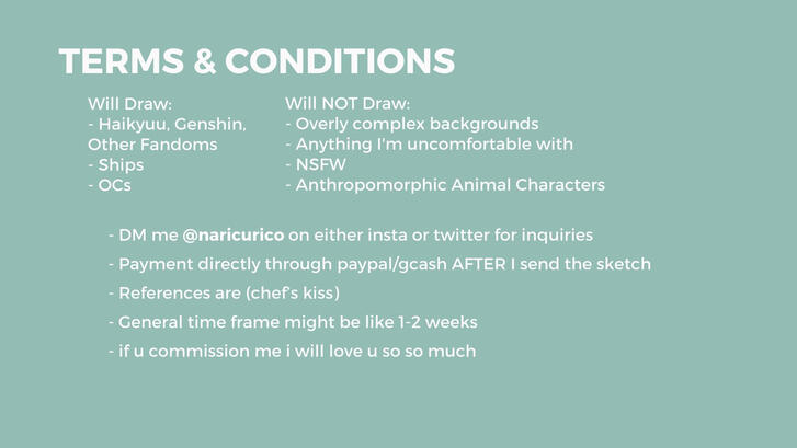 note: commission details may be updated in the future, I will make new posts and sheets when that happens! |
